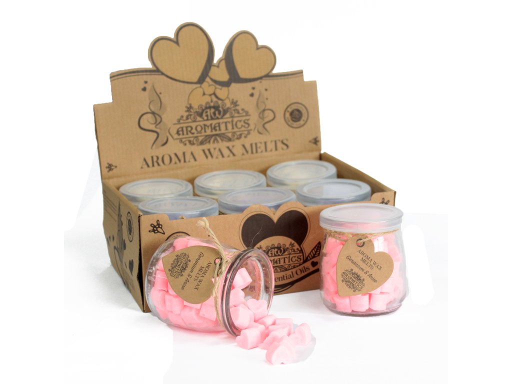 Aroma Vonný Vosk obsahují 16 srdcí v každé sklenici vyrobených z čistých esenciálních olejů. Stačí položit pouze jedno nebo dvě srdíčka do aroma lampy pro vytvoření krásné vůně.