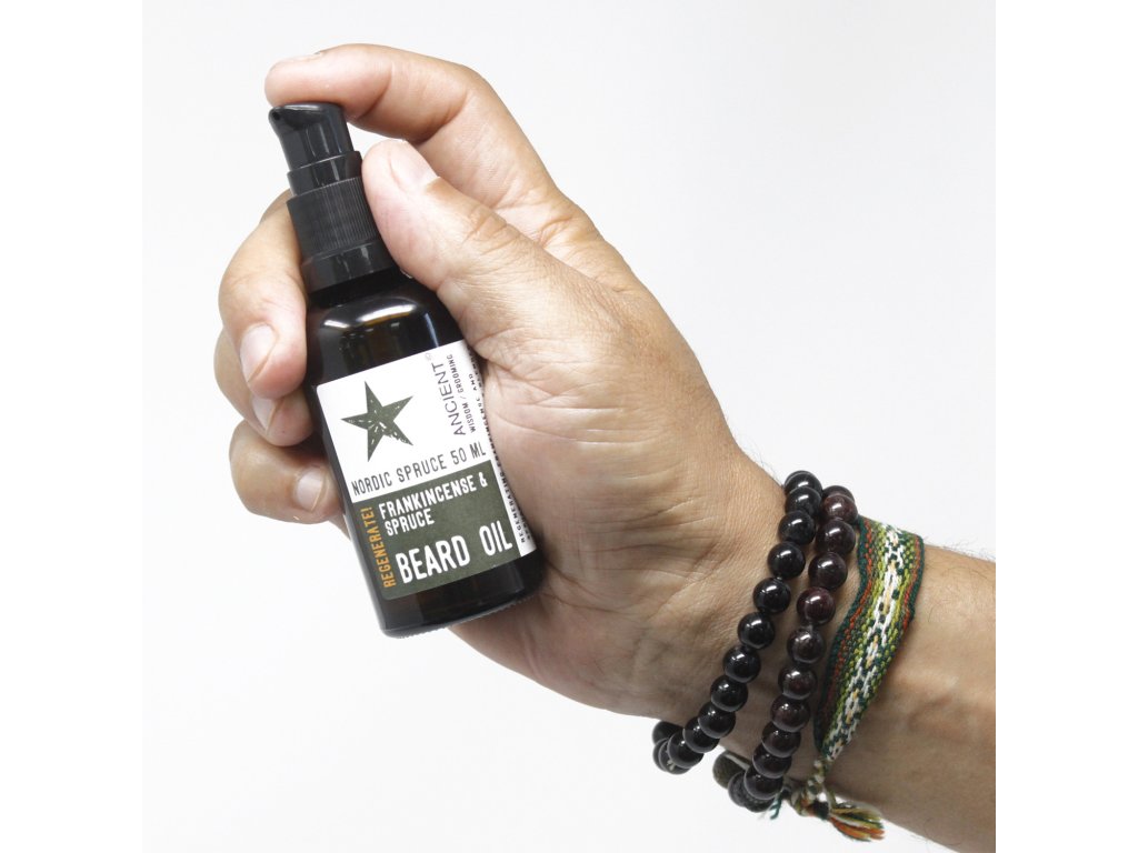 Olej na Vousy Severský Smrk je vyráběn z vonných éterických olejů a pečlivě smíchán s meruňkovým, arganovým a jojobovým olejem pro každodenní použití.Směs vonných éterických a smrkových éterických olejů má omlazující vlastnosti a díky směsi meruněk, Arganu a Jojoby je perfektním způsobem, jak začít svůj den s tím že se budete cítit příjemně a zregenerovaně.