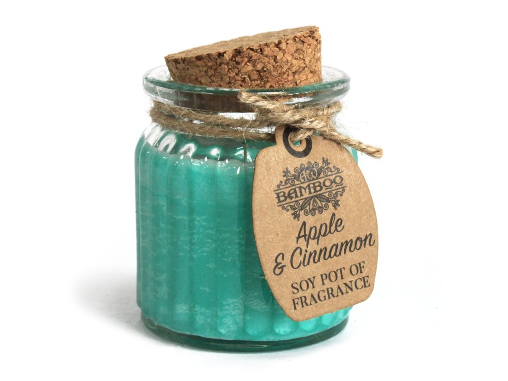 Tyto Sójové Svíčky jsou dodávány v skleněných nádobách pro více použití, s korkovým víčkem a přírodní hnědou papírovou etiketou upevněnou s jutovým provázkem.