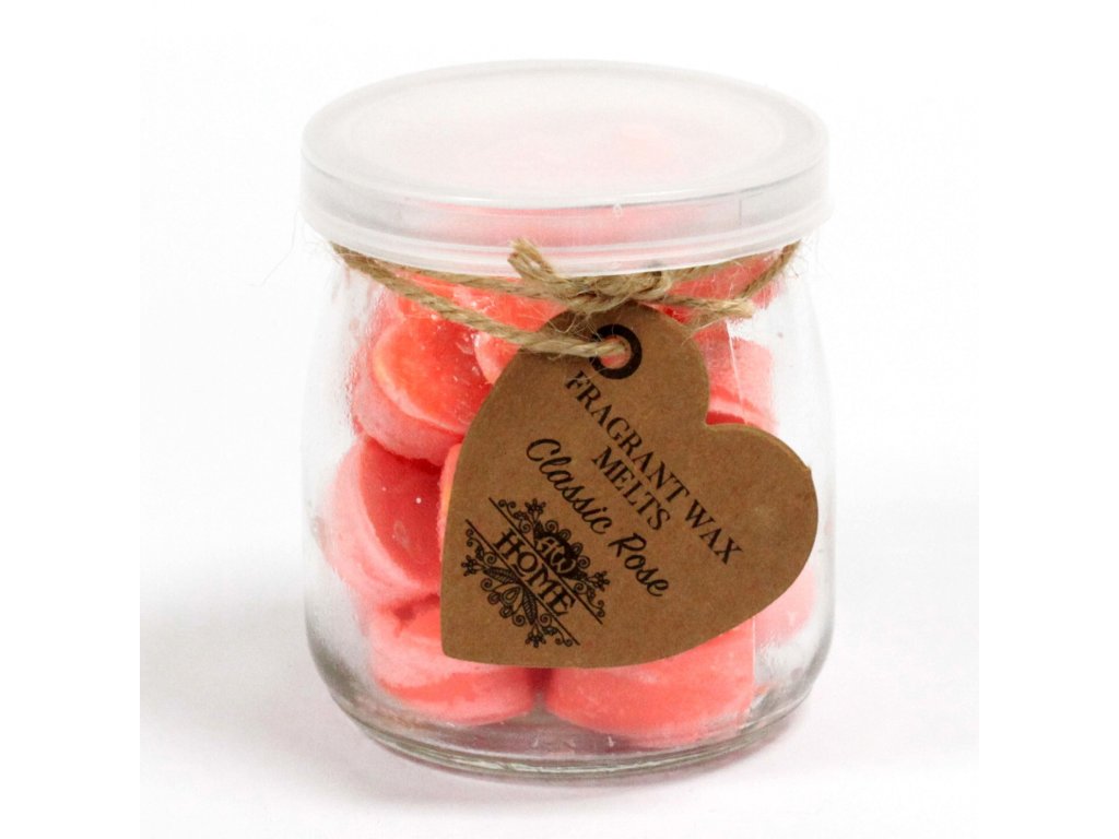 V každé sklenici najdete 16 kusů vosku ve tvaru srdce. K dispozici máme sedmnáct různých vůní s různými barvami.