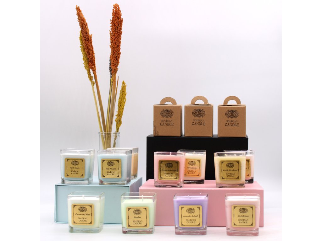 Dovolte mi představit Vám novou nabídku Sojových Svíček vyrobených z hydrogenizovaného sojového oleje, které neobsahují syntetický vosk nebo parafín. Tyto svíčky se dodávají v robustních recyklovatelných skleněných nádobách, které je možné znovu použít.